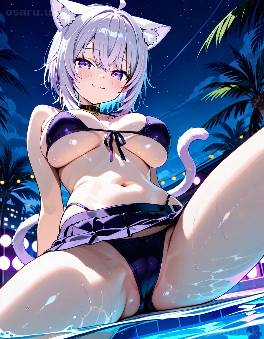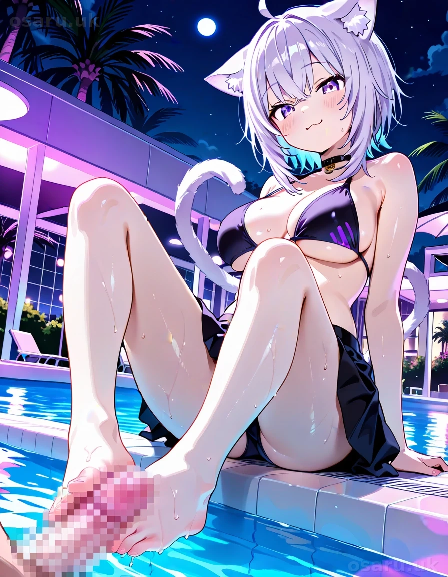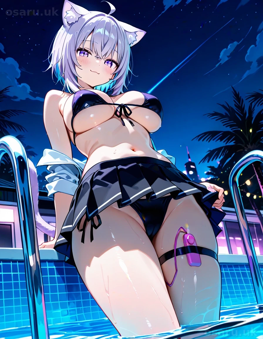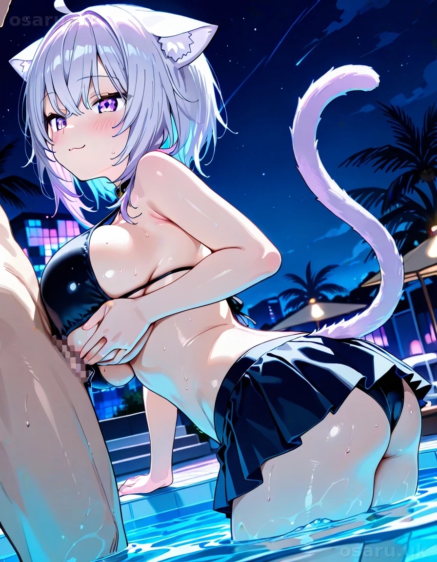 猫又おかゆのAI生成イラスト集(30枚)。ビキニ/プール/誘惑/乳首舐め